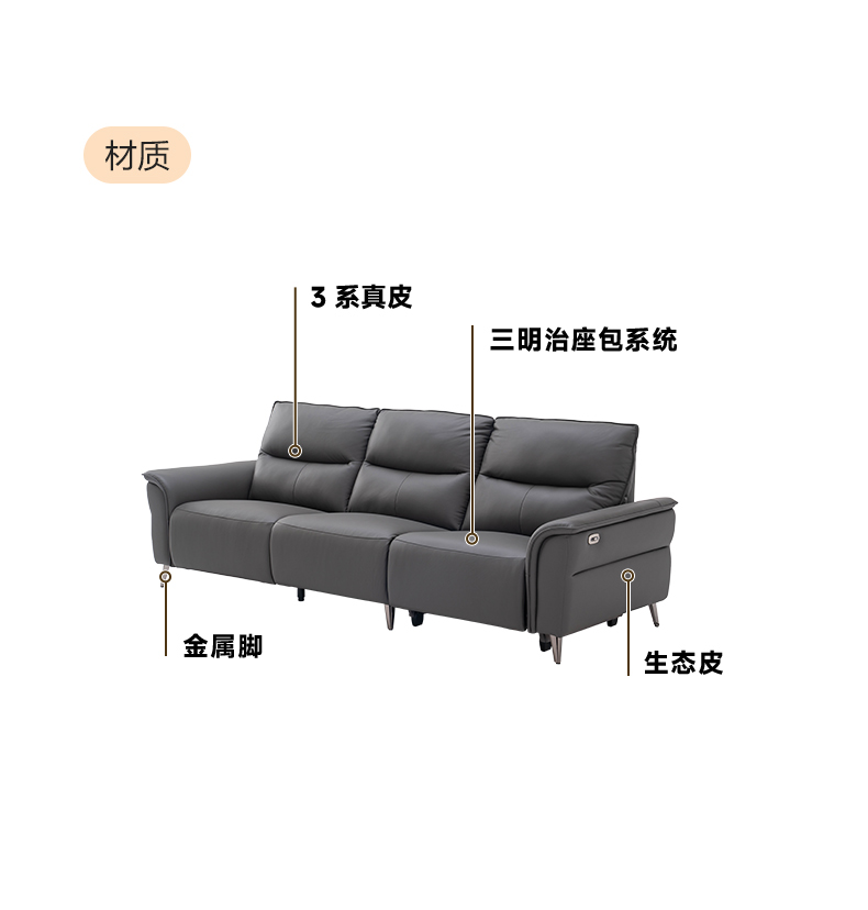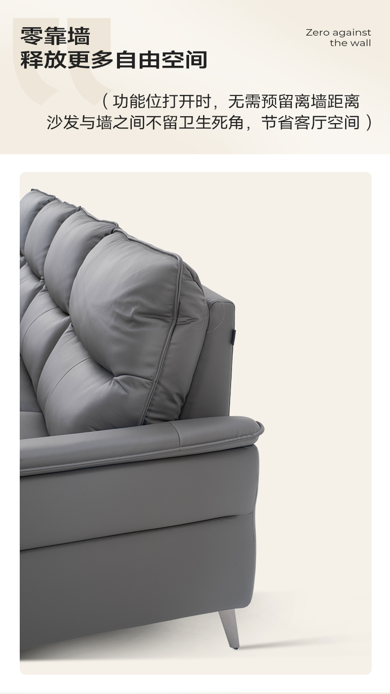 【零靠墙,释放更多自由空间】功能位打开时 无需预留离墙距离沙发与墙之间不留卫生死角 节省客厅空间。