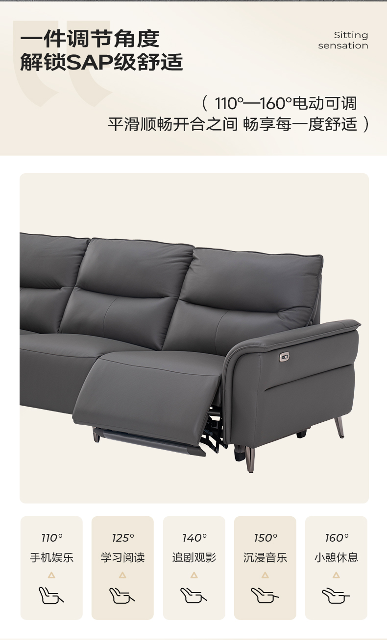 新品【一键调节角度,解锁SAP级舒适】110°—160°电动可调 平滑顺畅开合之间 畅享每一度舒适。