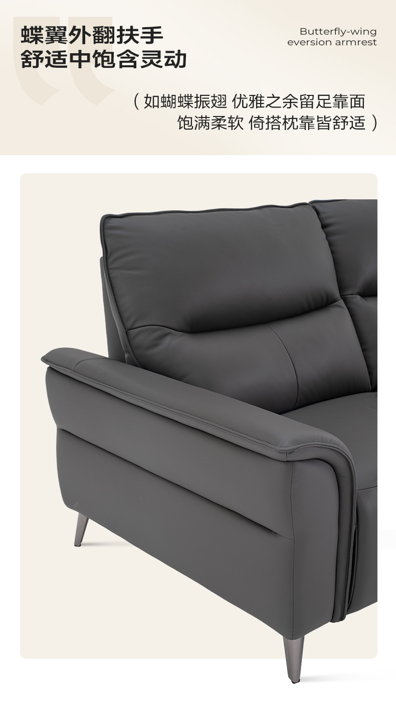 【蝶翼外翻扶手,舒适中饱含灵动】如蝴蝶振翅 优雅之余留足靠面,饱满柔软 倚搭枕靠皆舒适